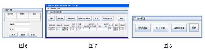数据下载完成后,点击“清除仪器存储数据”按钮,则清空仪器测量存储的所有数据,准 备下次测量存储。 (1)输水历时填写规则: 例 如: 2008年4月5日7点1分 ;应写成:2008-04-05 07:01 例 如: 2010年12月26日17点36分;应写成:2010-12-26 17:36 一般格式:比如2008年04月05日 7点1分 应写成2008-04-05 07:01 2008代表年份,由 4位 数字组成; 04代表月份,由 01 到 12 之间的 2位 数字组成,不足2位的用0补齐;05 代表日,由 01 到31 之间的2位 数字组成,不足2位的用0补齐。年月日之间用“空格”键分隔。07 代表7点钟,由 00 到 23 之间的 2位 数字组成,不足2位的用 0 补齐, 01 代表1分钟,由 00 到 59 之间的 2位 数字组成,不足2位的用0补齐。 5-2固定测量数据下载 按照“4-1仪器与计算机连接”所述方法,连接如图2。双击软件图标““””运行程序, 输入管理员用户名和密码,打开仪器电源后,点击“登录”按钮。登录成功后,点“数据操作”下拉菜单,点击“固定测量数据下载”如图4,进入固定测量数据下载界面,点击“下载”按钮,即完成下载任务。 6.测流仪器设置 在完成5-1或5-2所述内容后,根据需要,对仪器进行设置。在软件主界面上点“设置”按钮,进入图8界面。 点“锁定设置”按钮后,测流仪器无法设置参数。避免闲杂人员对仪器进行各种操作。 点“打开设置”按钮后,测流仪器恢复各种设置功能。 点“清除总水量”按钮,仪器固定测量时存储的数据被清空。 备注: 软件登录、数据下载、仪器设置、清除仪器存储数据等,都必须在仪器开机状态下操作。若测流仪已自动关机,需要重新加电开机后,再进行上述操作。软件的其它功能及其操作方法,不再叙述。 |